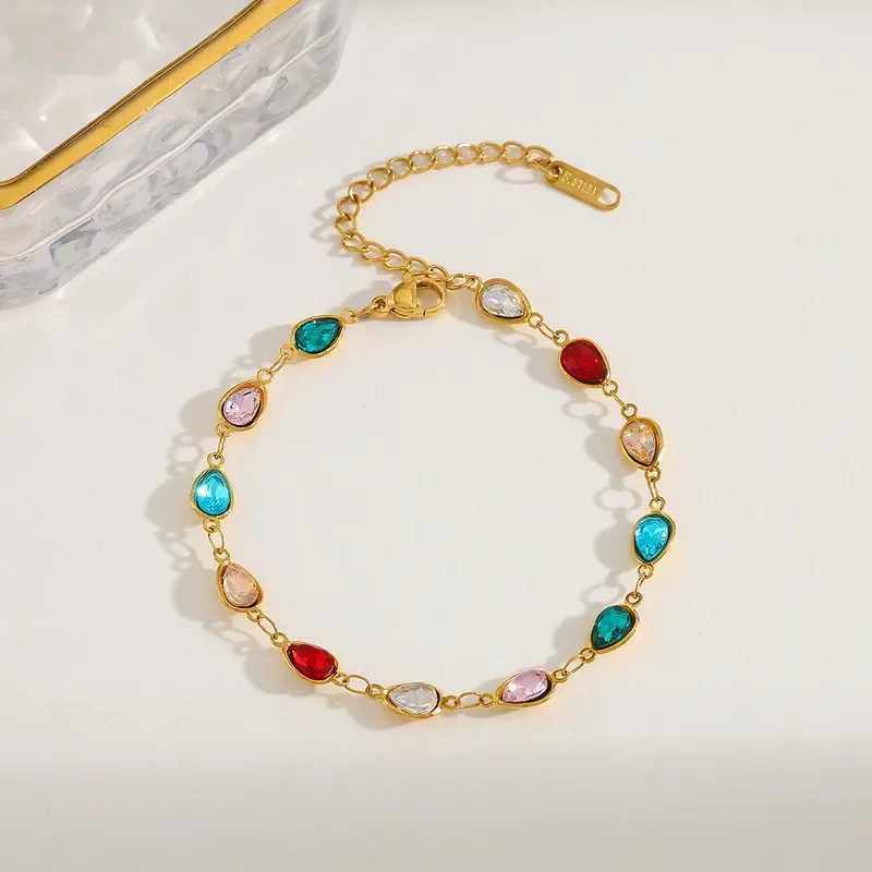 Bracelet perlé pierres naturelle en acier inoxydable multicolore